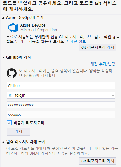 5. 팀 탐색기 - GitHub에 게시