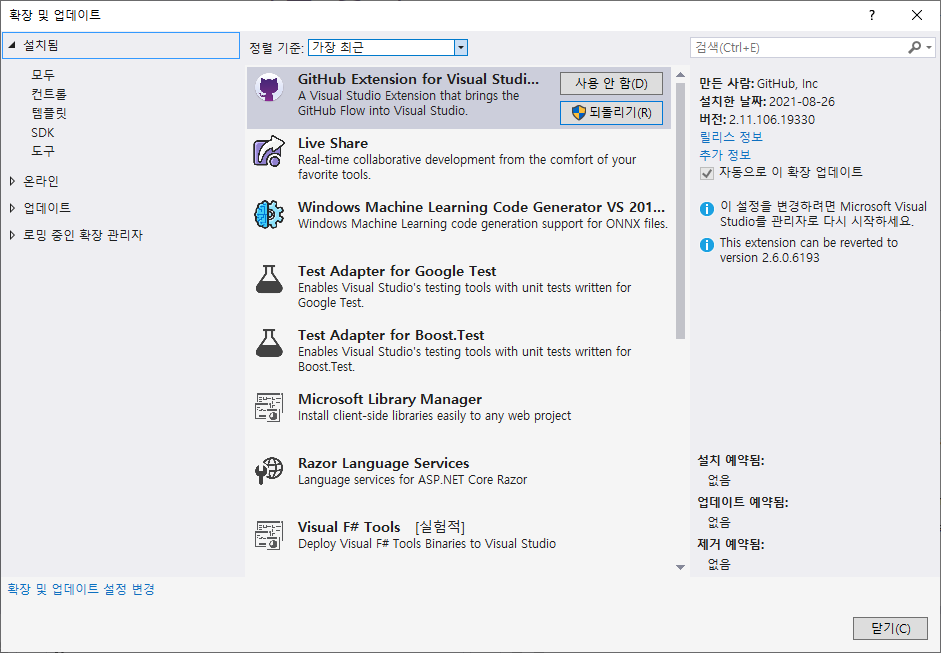 1. GitHub Extension for Visual Studio 설치
