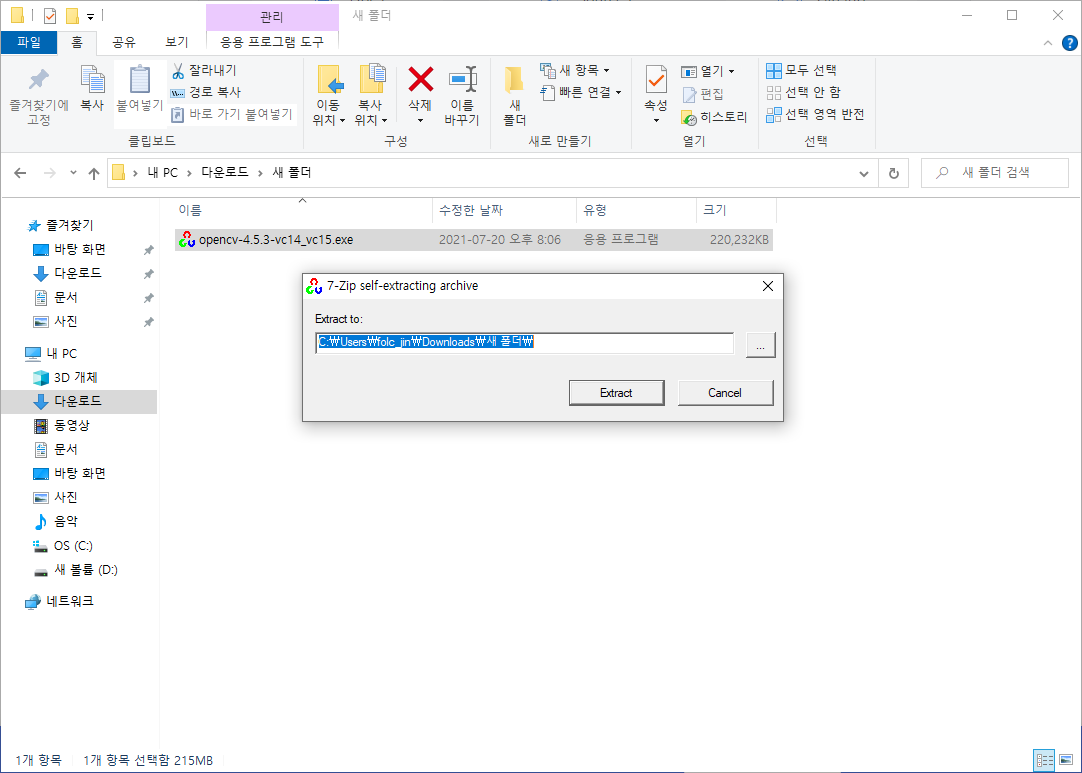 # exe 파일을 더블클릭으로 unzip 수행한다.