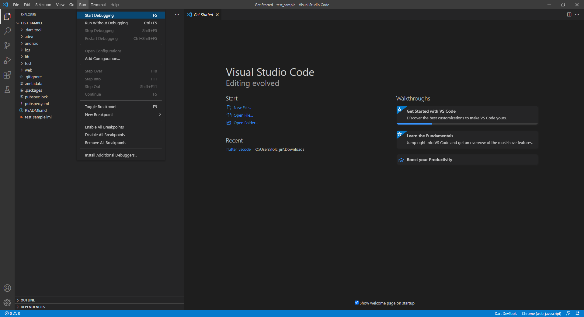 # Extensions 툴바에서 flutter 를 검색하여 설치 한다.