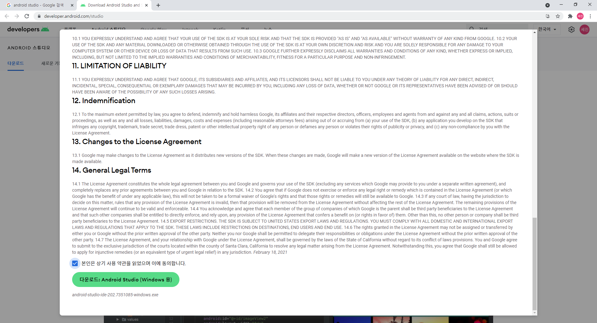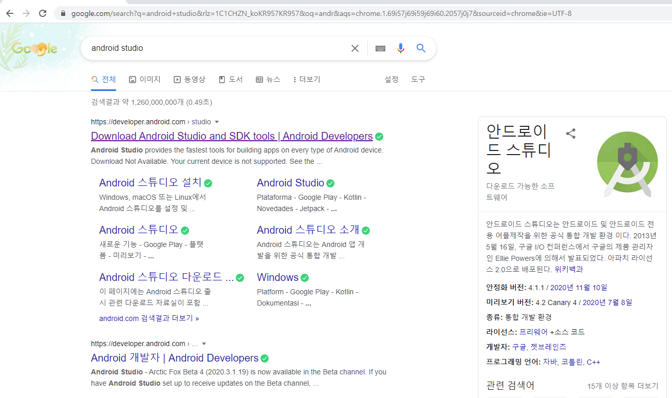 1. Android Studio 사이트 검색