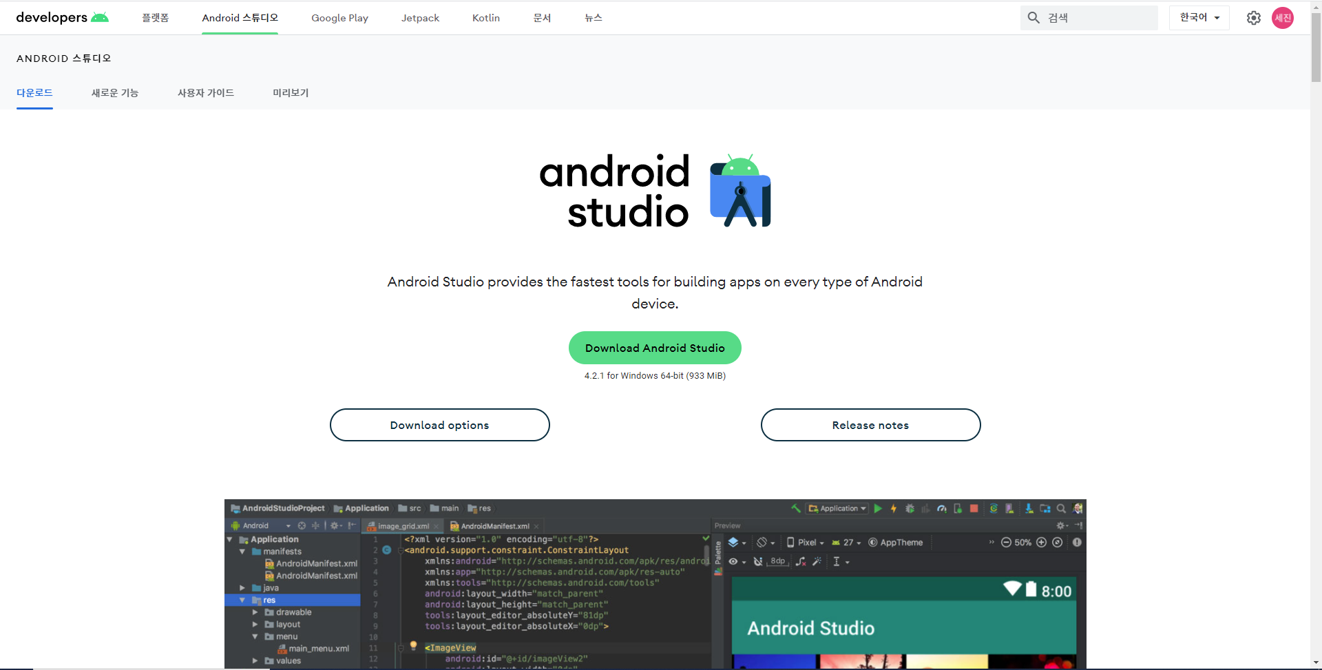 2. Android Studio 사이트 진입
