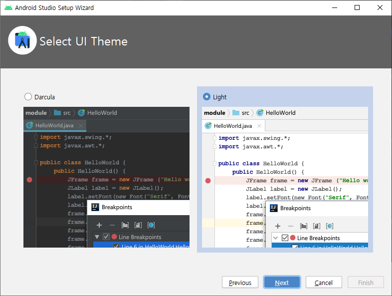 13. Android Studio UI 테마 선택