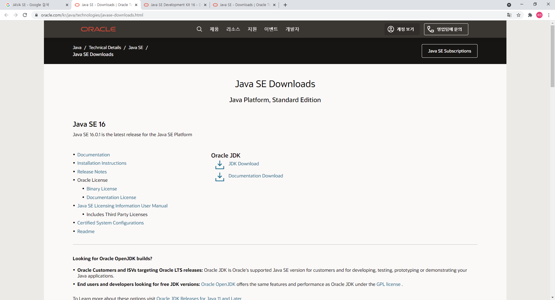 1. Oracle 사이트 검색