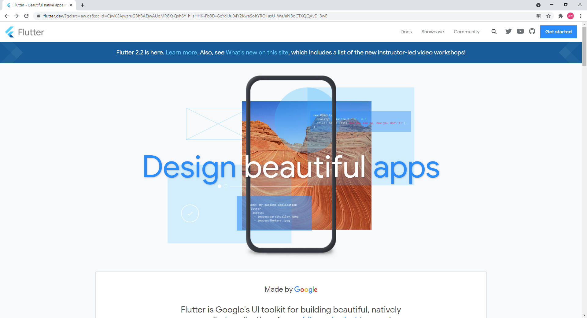 2. flutter.dev 사이트 진입