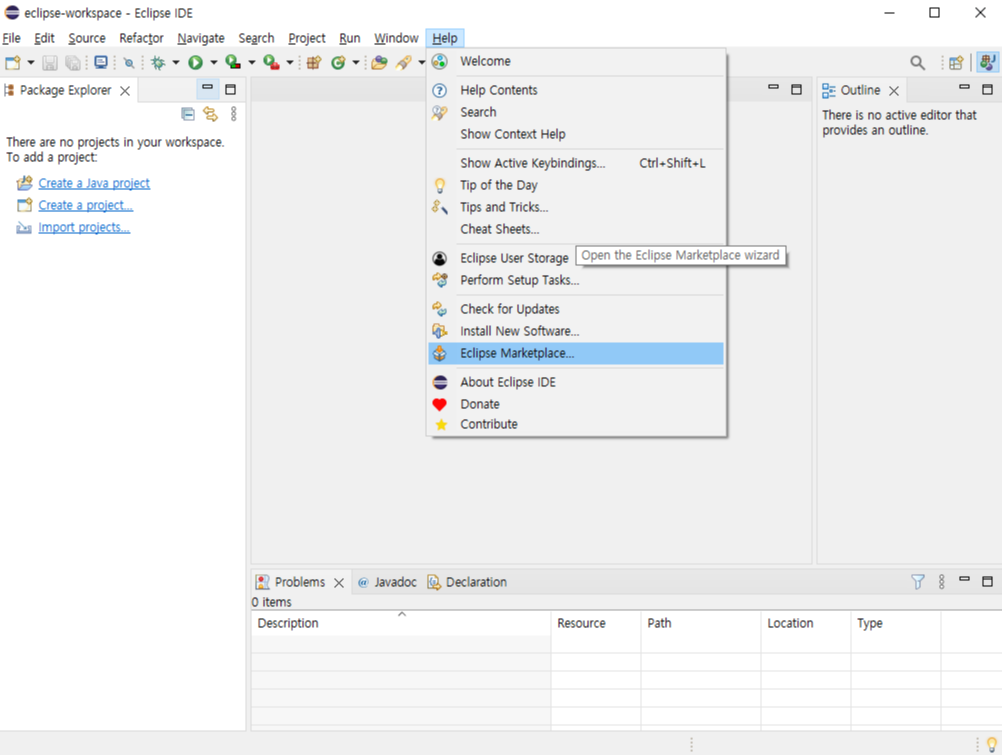 > Help 에서 Eclipse Marketplace... 선택