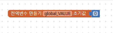 > "변수 - 전역변수 만들기" 화면에 Drag & Drop ( 초기값은 0으로 자동 설정되지만 되도록이면 값을 할당 하도록 한다. )
