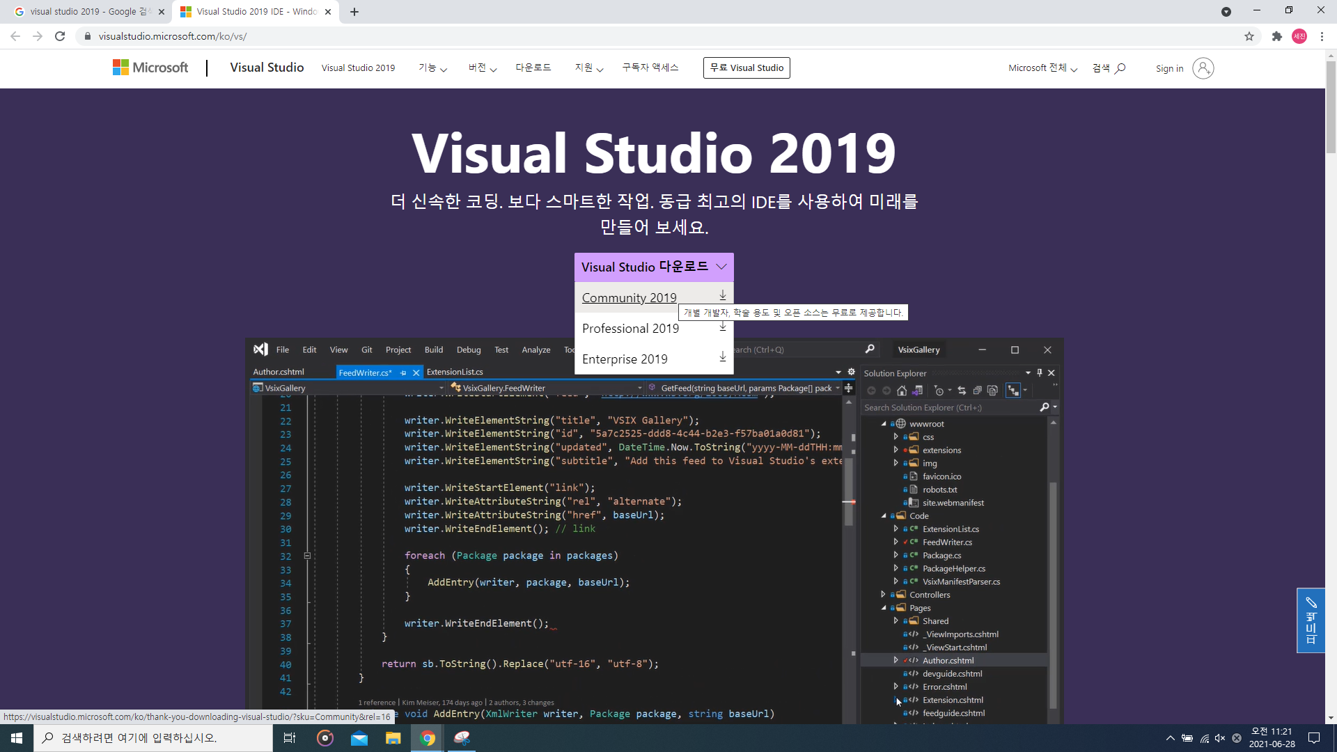 2. Visual Studio 사이트 진입