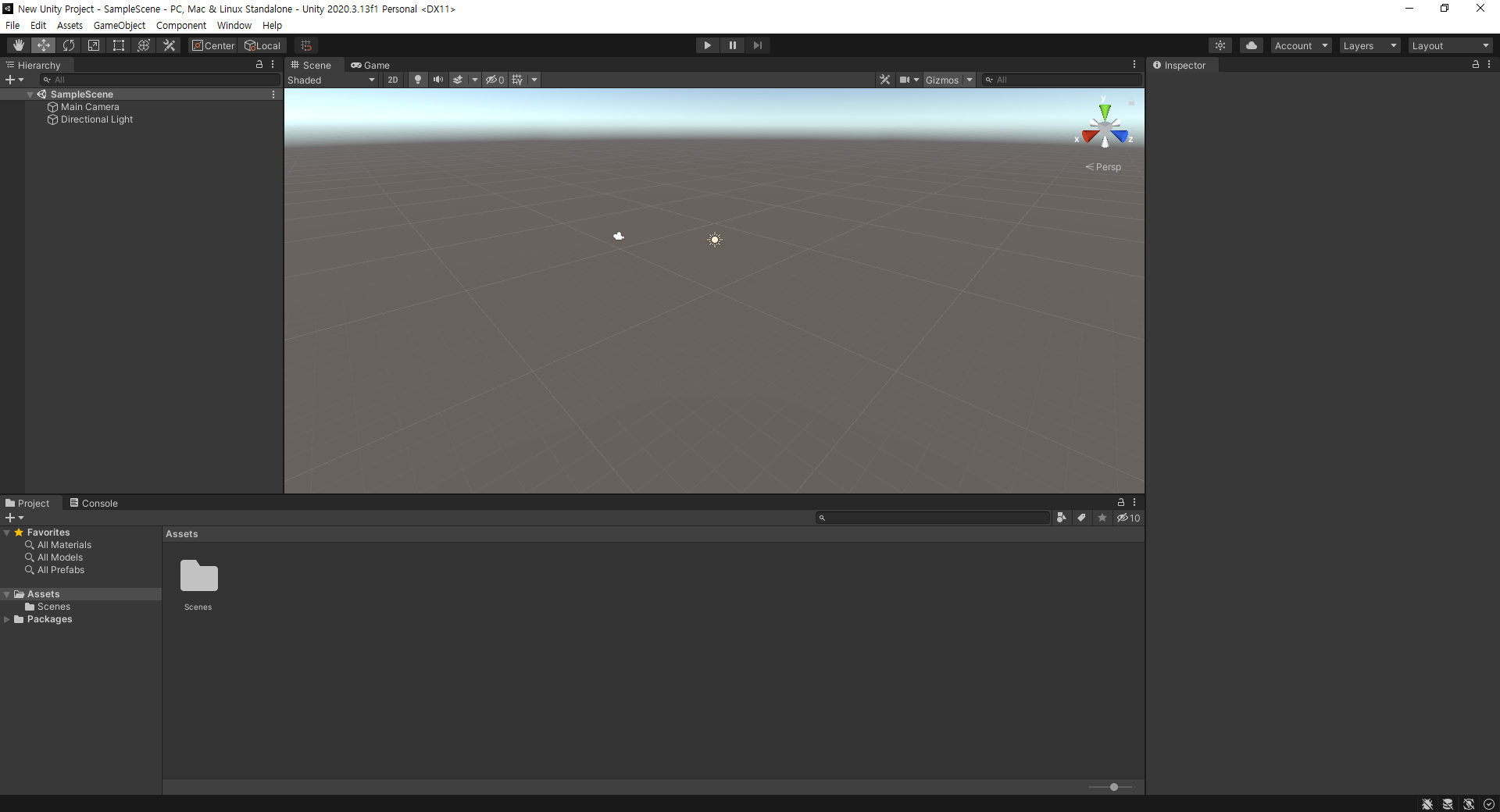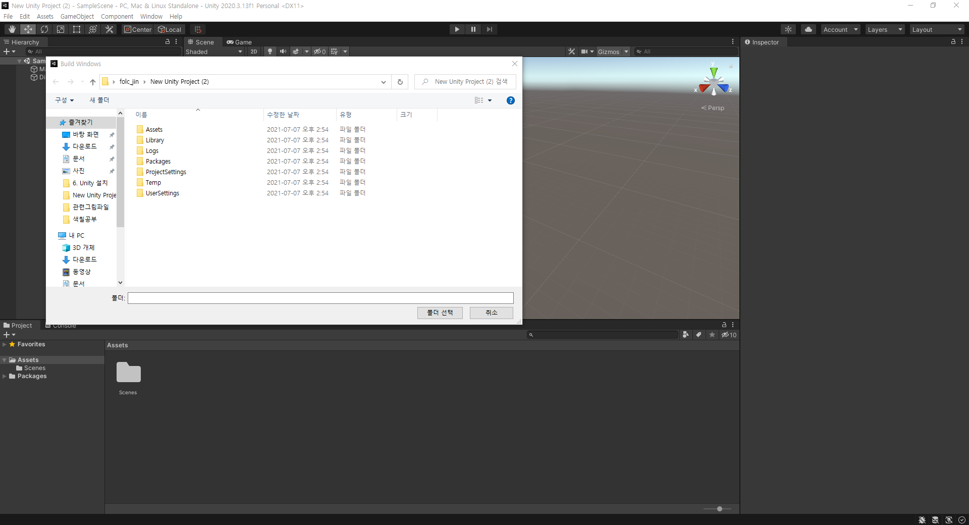 # 자동으로 SampleScene 를 만들어 표시해준다.