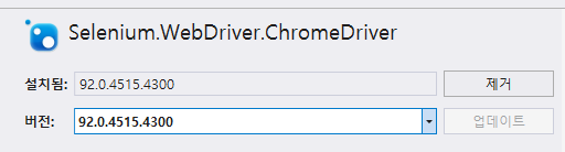 > Selenium.WebDriver.ChromeDriver 버전을 기입해도 됨.